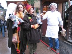 Der Bäckermeister vom Historischen Weihnachtsmarkt auf der Wartburg hat zwar wegen des großen Besucherandrangs keine Zeit, die Konzerte von uns im Festsaal zu besuchen, aber er "füttert" schon mal unsere Eselchen, die wir für das Konzert "Engel und Wichtel begrüßen die Kinder" spazieren tragen...